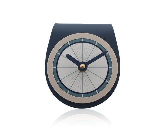 The Solo Synchronise Navy Blue Desk Clock will give a small pop of colour to desks, shelves, and bedside tables. The attractive dial has a mid blue and grey line detail, clear white hour markers and a standout cream frame.